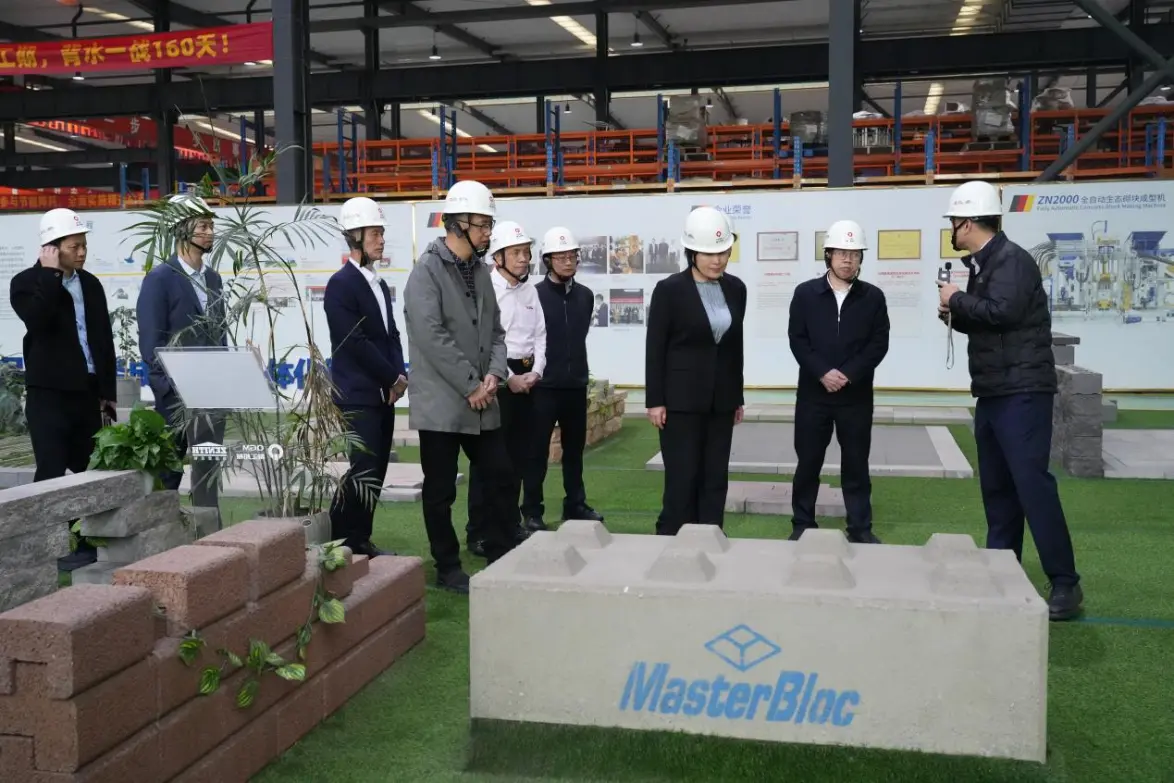 विटांच्या नमुना प्रदर्शन क्षेत्रात, लिऊ मिन आणि त्यांच्या शिष्टमंडळाने विविध पारगम्य विटा, पर्यावरणीय उतार संरक्षण विटा, फरसबंदी विटा आणि उच्च मूल्यवर्धित विशेष उत्पादनांची तपासणी केली, स्पंज शहर बांधकाम, नगरपालिका अभियांत्रिकी आणि व्यापक घनकचरा वापरातील त्यांच्या अनुप्रयोगांची तपशीलवार माहिती मिळवली. महाव्यवस्थापक फू झिनयुआन यांनी स्पष्ट केले की कंपनी मोल्डिंग तंत्रज्ञान आणि प्रक्रिया नियंत्रण सतत अनुकूल करते, उत्पादनाची ताकद, देखावा गुणवत्ता आणि उत्पादन कार्यक्षमता सतत सुधारते, हिरव्या आणि कमी-कार्बन विकासाच्या आवश्यकतांना सक्रियपणे प्रतिसाद देते आणि उच्च गुणवत्ता आणि पर्यावरण संरक्षणाच्या दिशेने बांधकाम साहित्याच्या अपग्रेडला प्रोत्साहन देते.