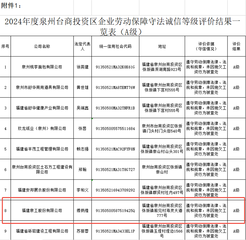 अलीकडे, "2024 एंटरप्राइज लेबर सिक्युरिटी लॉ कंप्लायन्स अँड इंटिग्रिटी रेटिंग इव्हॅल्युएशन पार पाडण्यासाठी क्वानझौ तैवान इन्व्हेस्टमेंट झोन मॅनेजमेंट कमिटीच्या पीपल्स लाइव्हलीहुड सिक्युरिटी ब्युरोच्या नोटिस" च्या तरतुदींनुसार (क्वानटाई गुआनमिन्शेंगवेन [2025] क्र. 11, क्वांझोउ तैवान इन्व्हेस्टमेंट झोन मॅनेजमेंट कमिटी) (यापुढे "QGM Co., Ltd." म्हणून संदर्भित) "2024 Enterprise Labour Security Law Compliance and Integrity Rating A-level Enterprise" असे रेट केले गेले, हा सन्मान प्राप्त करणाऱ्या जिल्ह्यातील 25 उपक्रमांपैकी एक बनला.