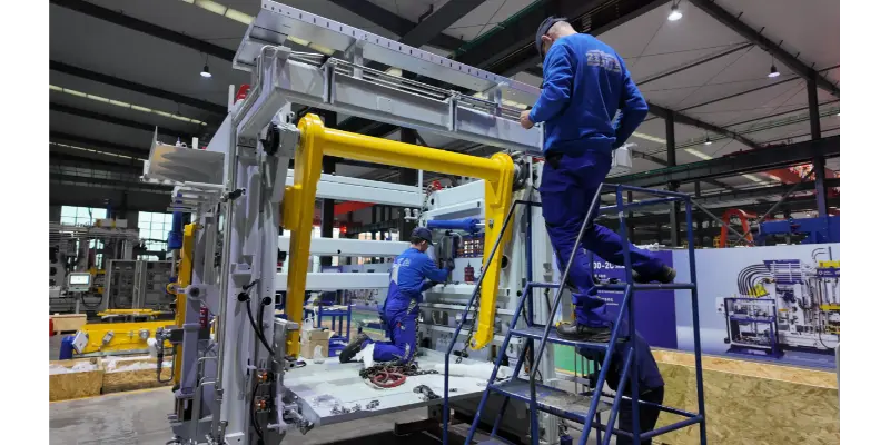 च्या उत्पादन ओळी येथेक्वांगॉन्ग मशिनरी कं, लि., यंत्रसामग्रीची गर्जना आणि चकचकीत कार्यशाळा अलीकडे "प्रमाण" बनल्या आहेत. देशांतर्गत आणि आंतरराष्ट्रीय ऑर्डरमध्ये सतत वाढ झाल्यामुळे, जगभरातील ग्राहक त्यांच्या उपकरण खरेदीच्या मागणीत वाढ करत आहेत. प्रत्येक ब्लॉक मोल्डिंग मशीनची वेळेवर डिलिव्हरी सुनिश्चित करण्यासाठी, क्वांगॉन्ग मशिनरी कं, लि. ने उत्पादन, तंत्रज्ञान, गुणवत्ता तपासणी, आणि लॉजिस्टिक विभाग वेळेशी लढण्यासाठी एकत्र काम करून "डिलिव्हरीची हमी देण्यासाठी विशेष कृती योजना" त्वरीत सुरू केली.