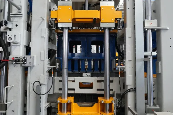 7हेड लॉकिंग डिव्हाइस दाबा या यांत्रिक लॉकिंग यंत्रणेमध्ये उच्च-शक्तीचे लॉकिंग ब्लॉक्स, वेज-आकाराचे प्रेस हेड आणि डबल-ॲक्टिंग हायड्रोलिक सिलेंडर असतात. डिमोल्डिंग दरम्यान, सिलिंडर लॉकिंग ब्लॉक्स चालवतात ज्यामुळे प्रेस हेड रेडियल क्लॅम्प होते, ज्यामुळे यांत्रिक गतिरोध निर्माण होतो. साचा नंतर स्थिर दबावाखाली सोडला जातो, प्रभावीपणे लवचिक रीबाउंड आणि सूक्ष्म-हालचाल काढून टाकतो - तीक्ष्ण विटांच्या कडा, गुळगुळीत पृष्ठभाग आणि मोठ्या प्रमाणात सुधारित उत्पादन पात्रता दर सुनिश्चित करते.